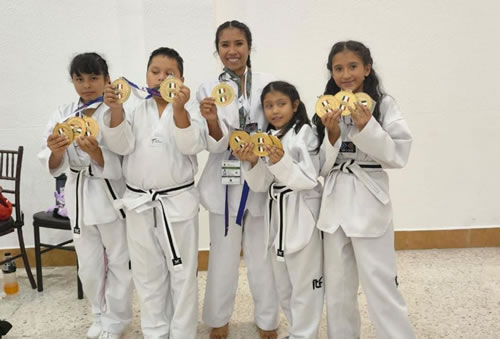 Perla y Zaira Naranjo, Iker Balleza, América Hernández y Cielo Santiago, integrantes del CDC Santo Tomás, triunfan en torneo nacional con apoyo del DIF Municipal.