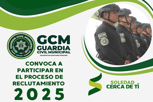¡Soledad de Graciano Sánchez te necesita! La Guardia Civil Municipal te invita a formar parte de su estado de fuerza y colaborar en la paz, la seguridad y la tranquilidad de las familias soledenses. ✅🚓