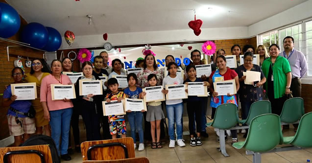 Soledad de Graciano Sánchez SLP.- Con la firme convicción de mantener la cercanía con las familias y fomentar su desarrollo integral, el Ayuntamiento de Soledad de Graciano Sánchez entregó 50 constancias de participación a niñas, niños y adultos que concluyeron los talleres de manualidades, computación y cocina impartidos en el Centro de Extensión San Francisco, en atención a las instrucciones del Alcalde Juan Manuel Navarro Muñiz.