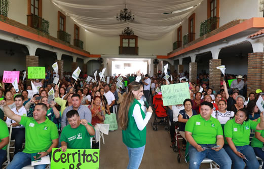 San Luis Potosí SLP.- Como parte de la intensa gira de actividades que tiene por todo el Estado, la Senadora Ruth González Silva arribó a Cerritos donde, acompañada de cientos de familias, tomó protesta al Comité Municipal del Partido Verde Ecologista de México (PVEM).