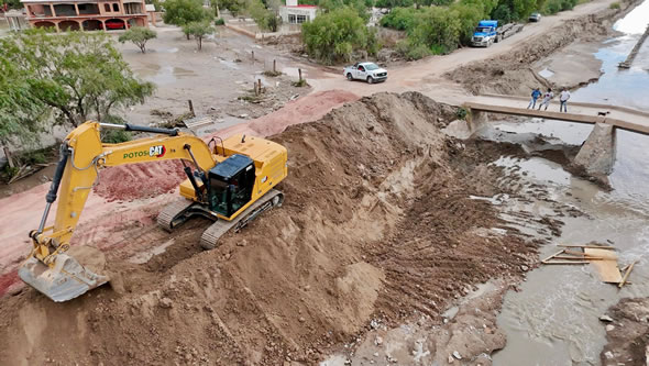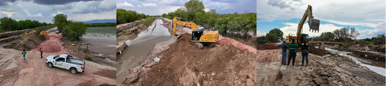 Soledad de Graciano Sánchez SLP.- Tras la visita del Alcalde de Soledad de Graciano Sánchez, Juan Manuel Navarro Muñiz, a la zona que sufrió afectaciones por el desbordamiento del Río Santiago, en Palma de la Cruz, se mantiene los trabajos de creación de bordos para evitar que el cause pierda su trayecto.