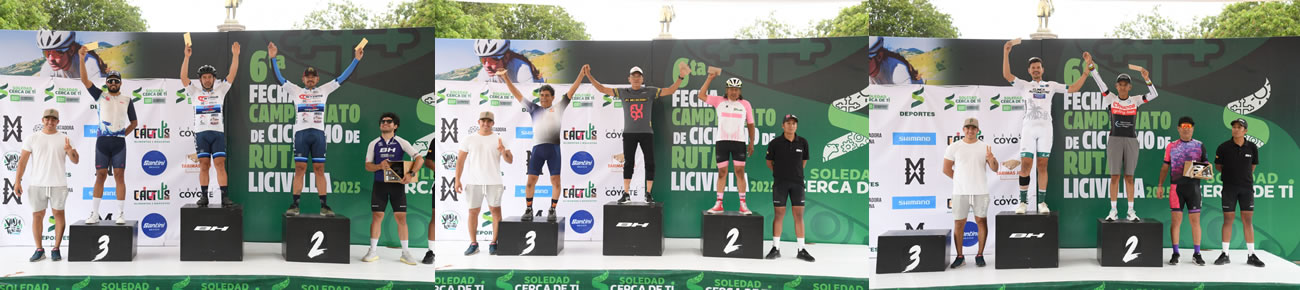 Durante la jornada se premiaron a las y los mejores ciclistas en diferentes categorías: en la Élite Varonil, los ganadores fueron Emery Hernández, José Alfredo Aguirre y David Gaona; mientras que, en Élite Femenil, el podio fue para María Molina Rivas, Adelaida Belmonte y Sharik Quintero; también destacaron Ignacio González (50 varonil), Martín Lino Rivera (60 varonil), Víctor Hugo Rodríguez (novatos) y Georgina Posadas (novatas), quienes recibieron premios en efectivo.
