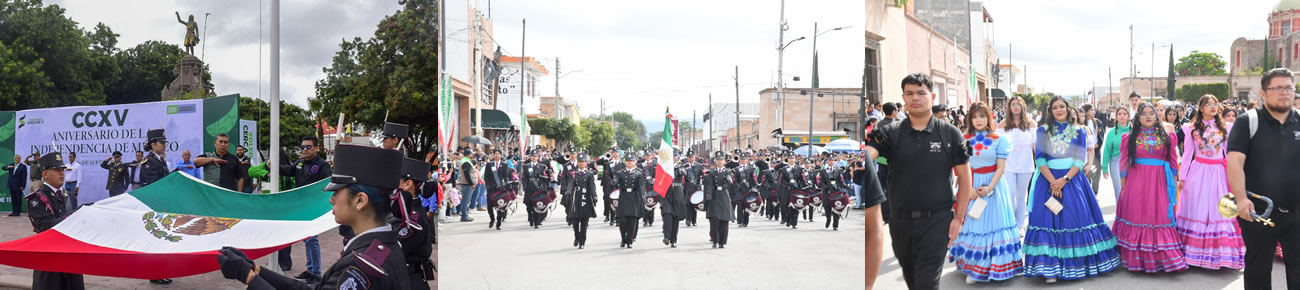 Tras la ceremonia, dio inicio el Desfile Cívico que partió de la Plaza principal, recorrió la avenida Benito Juárez, la calle Morelos y Miguel Hidalgo, para finalmente regresar a su punto de partida; en este participaron contingentes de la Guardia Civil Estatal y asociaciones civiles como la de charros, además de contingentes conformados por estudiantes de escuelas primarias, secundarias, preparatorias e instituciones de nivel superior como el Instituto Tecnológico Regional.