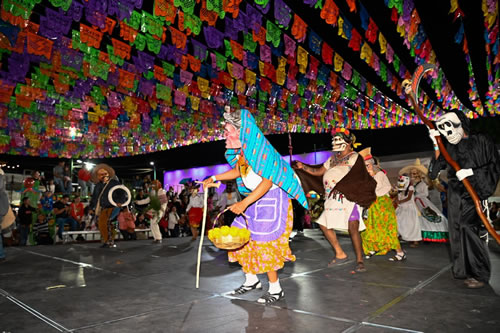 Este sábado, la comparsa originaria de Matlapa centró la atención de niños, niñas, jóvenes y adultos, que disfrutaron de un día más de cultura, tradición, olores y colores. Antes, fueron testigos de singulares Altares de Muertos frente a la Presidencia, como parte del Concurso que se celebró, obteniendo el primer lugar el realizado por la Casa Cactus.