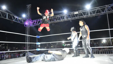 Gran noche de Lucha Libre vivieron familias soledenses en la Plaza Principal