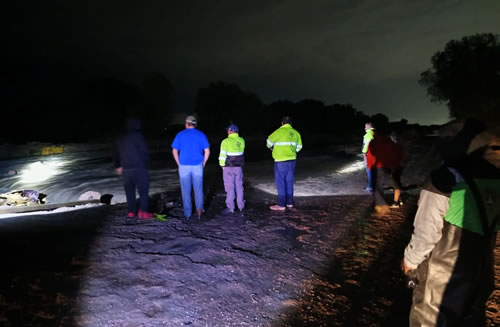Entre las acciones realizadas, instruidas por el edil, Navarro Muñiz, desde anoche, se realizan las labores de contención y reforzamiento de bordes en el Río Santiago, a la altura de la localidad Palma de la Cruz, con el objetivo de evitar el desbordamiento de agua que lleva el cause natural. Con cargas de material necesario, se trabaja desde anoche en estas labores.