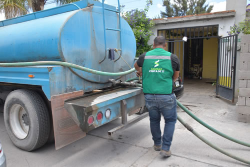 Soledad de Graciano Sánchez SLP.- Reafirmando el compromiso con las familias del municipio y atender de manera directa sus necesidades más prioritarias, el Ayuntamiento de Soledad de Graciano Sánchez, mediante la entrega de agua potable a través de pipas propias y rentadas; esto siguiendo las directrices del Alcalde Juan Manuel Navarro Muñiz de mantener un Gobierno cercano a las peticiones de la ciudadanía.