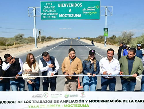 El secretario general de Gobierno, J. Guadalupe Torres Sánchez dijo que las obras que entregó el Mandatario Estatal como la supercarretera Villa de Arista-Moctezuma con una inversión de 466 millones de pesos, se suma a la modernización del tramo Zacatecas–Ahualulco, así como la continuidad a Moctezuma, Venado y Charcas para conectar con Matehuala y el camino a Villa de Arista para enlazar con la carretera 57.