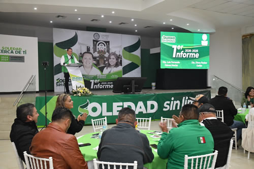 Soledad de Graciano Sánchez SLP.- En representación del Alcalde, el Secretario General del Ayuntamiento, Benjamín Pérez Álvarez asistió al evento, donde también estuvieron presentes ciudadanas y ciudadanos de Soledad que atestiguaron el informe de sus actividades y refrendaron su interés por las acciones que benefician a su entorno.