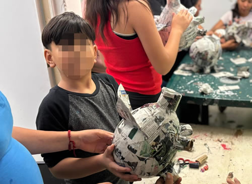 Las actividades incluyen enseñanza sobre el ahorro mediante el uso de alcancías, así como talleres de pintura, creación de flores en foamy, esferas de abundancia, fofuchas y muñecas africanas