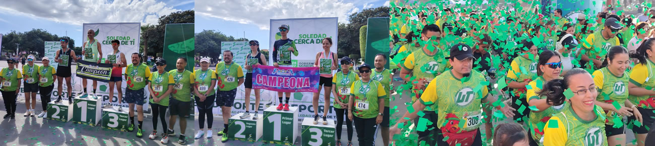 Soledad de Graciano Sánchez SLP.- El Ayuntamiento de Soledad de Graciano Sánchez a través de la coordinación de deporte municipal respaldó la realización de la Carrera Atlética conmemorativa del 28 aniversario de la Universidad Tecnológica de San Luis Potosí, que se llevó a cabo este domingo 19 de octubre, reuniendo a estudiantes, docentes, personal administrativo y ciudadanía en general en el tradicional circuito de la Carrera de la Enchilada.
