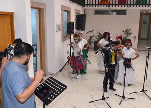 Soledad de Graciano Sánchez SLP.- Con entusiasmo y alegría, el primer Coro Infantil de la Escuela Municipal de Música engalanó la inauguración del Altar de Muertos Monumental instalado en el interior de la Presidencia Municipal; las y los pequeños ataviados como catrines y catrinas, interpretaron con emotividad los temas “Recuérdame”, “Un Poco Loco” y “El Mundo es mi Familia”, conquistando al público presente con su talento y simpatía.