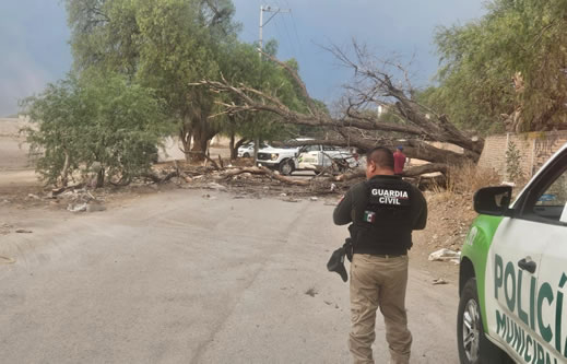 También se reportó la caída de dos árboles, uno de ellos en Camino Viejo a San Pedro y calle 13 de Septiembre, en la colonia 1ro. de Mayo. Personal de servicios municipales ya trabaja en el retiro de ramas y liberación de vialidades.