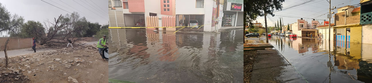 Soledad de Graciano Sánchez SLP.- Una intensa tromba sorprendió esta tarde a vecinos de diversas colonias del municipio. Por instrucciones del alcalde Juan Manuel Navarro, personal de la Coordinación Municipal de Protección Civil y elementos de la Guardia Civil Municipal activaron operativos de atención inmediata a las familias afectadas.