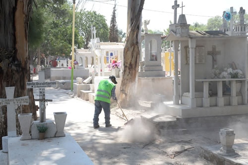 Este esfuerzo por revitalizar estos espacios, garantizará que la población acuda a visitar a sus seres queridos en espacios dignos, por ello las cuadrillas de cada panteón intensificaron las labores de limpieza profunda, realizando el deshierbe de maleza, el retiro de escombro o tierra en pasillos y alrededores, así como la rehabilitación con pintura de bardas, fachada y señalética. También se dará mantenimiento a las piletas de agua y capillas de estos camposantos.