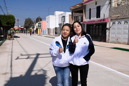 Soledad de Graciano Sánchez SLP.- Caminar sin tropezar, escuchar el paso tranquilo de los autos y ver las fachadas limpias de sus casas son ahora parte de la nueva rutina de las familias de la colonia San Felipe, donde la pavimentación de la calle Santa Catarina cambió por completo el entorno y la forma de vida de sus habitantes; después de más de 30 años de transitar por baches y lodo, las y los vecinos reconocen con emoción la respuesta del Ayuntamiento de Soledad de Graciano Sánchez, encabezado por el Alcalde Juan Manuel Navarro Muñiz, que escuchó su petición y llevó progreso hasta su puerta.