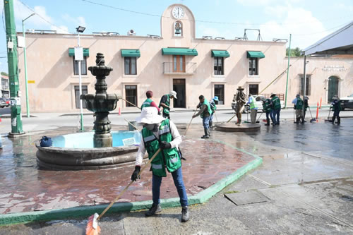 Soledad de Graciano Sánchez SLP.- El Gobierno Municipal de Soledad de Graciano Sánchez, a través de la Dirección de Servicios Municipales, llevó a cabo trabajos de limpieza y rehabilitación de la Plaza principal, a fin de mantener espacios dignos y seguros para las familias y las y los visitantes, mediante acciones que forman parte de la política social de mantenerse cerca a la población, escuchando sus necesidades y ofreciendo entornos limpios y funcionales, tal como lo ha instruido el Alcalde Juan Manuel Navarro Muñiz.