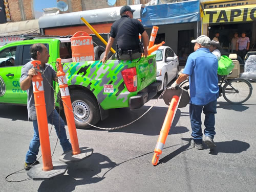 Soledad de Graciano Sánchez SLP.- Derivado de la atención inmediata a denuncias y reportes ciudadanos, la Dirección de Seguridad Vial y Movilidad de Soledad de Graciano Sánchez realizó el operativo “Barredora” en la Avenida José de Gálvez, el cual consiste en retirar objetos colocados con la intención de apartar lugares de estacionamiento en la vía pública.