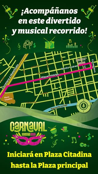 Soledad de Graciano Sánchez SLP.- El Ayuntamiento de Soledad de Graciano Sánchez invita a la ciudadanía a vivir el Carnaval de Soledad 2026 “Soledad suena y suena fuerte”, una de las celebraciones culturales más importantes del municipio, que se realizará el domingo 15 de febrero, a partir de las 16:30 horas, donde la música y la fiesta se encontrarán con las familias soledenses.
