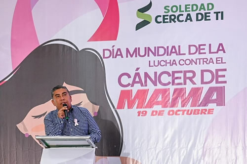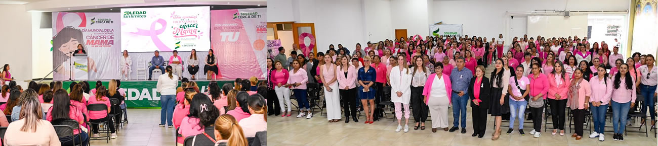 Soledad de Graciano Sánchez SLP.- El Alcalde de Soledad de Graciano Sánchez, Juan Manuel Navarro Muñiz dio comienzo al Foro Rosa “Con una mano en tu corazón y otra en tu conciencia”, en el marco de la conmemoración del Día Internacional de la Lucha contra el Cáncer de Mama, con la finalidad de fomentar la prevención y generar conciencia entre las mujeres sobre la importancia de la detección oportuna, realizado en el Auditorio Municipal, un espacio que reunió a servidoras públicas y sus familias para conocer más de esta enfermedad y las estrategias efectivas para combatirla.