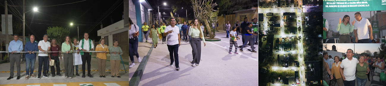 Soledad de Graciano Sánchez SLP.- Las historias de rezago social que por años se vivieron entre habitantes de la colonia Niños Héroes en Soledad de Graciano Sánchez, han quedado en el pasado, y hoy la realidad es el progreso, la modernidad y la dignidad para cientos de familias que recibieron por parte del Alcalde, Juan Manuel Navarro Muñiz y la Senadora de la República, Ruth González Silva, los trabajos de pavimentación con concreto hidráulico y un novedoso sistema de iluminación led.