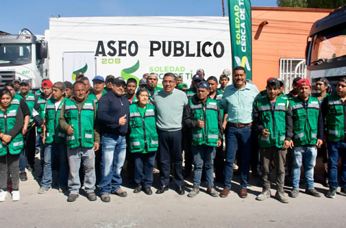 Soledad de Graciano Sánchez SLP.- Con el objetivo de garantizar una atención más eficiente a las familias soledenses en la recolección diaria de residuos, el Alcalde de Soledad de Graciano Sánchez, Juan Manuel Navarro Muñiz, anunció el fortalecimiento de los servicios municipales con la adquisición de cuatro nuevas tolvas y la incorporación de más personal, subrayando la importancia de seguir invirtiendo en áreas prioritarias como aseo, recolección de basura y alumbrado público, ya que son servicios que impactan de manera directa en la calidad de vida de la ciudadanía.