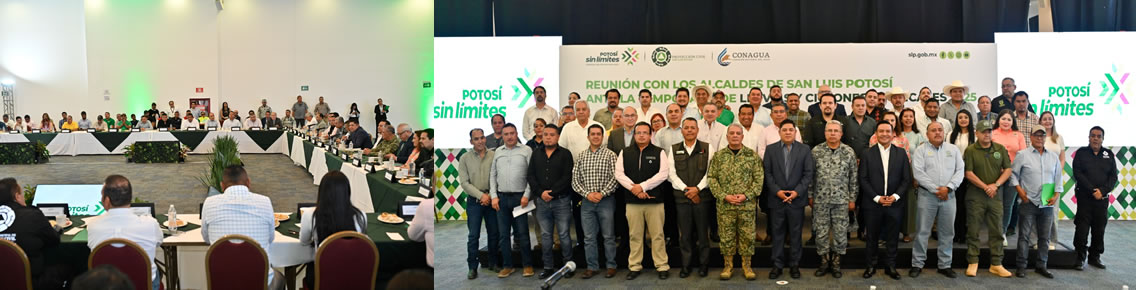 San Luis Potosí SLP.- El Gobernador de San Luis Potosí Ricardo Gallardo Cardona, ofreció apoyo sin límites a las y los presidentes municipales del Estado y les conminó a implementar acciones de prevención para evitar desbordes de agua, inundaciones en colonias y riesgos a las familias potosinas.