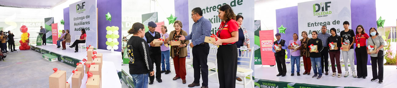 Durante su intervención, Blanca Vanessa Herrera Guadarrama, responsable de recursos humanos de OXXO, refrendó el compromiso de la cadena con la comunidad soledense. “Estamos aquí para entregar aparatos auditivos que representan la oportunidad de transformar la vida de 50 personas y de sus familias, cada uno de estos aparatos simboliza la inclusión, la cercanía y la importancia de escuchar a la comunidad, nos enorgullece colaborar con el DIF de Soledad y con su Presidenta, cuyo liderazgo ha sido clave para que estas iniciativas se concreten”, puntualizó.