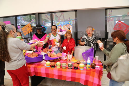 Durante el festejo, personas adultas mayores degustaron de un tradicional pan de muerto y chocolate artesanal, compartiendo gratos momentos y recuerdos sobre los familiares que ocuparon un lugar en el altar, con una fotografía y ofrenda que honró la memoria de sus seres queridos; más tarde participaron en la exposición de calaveritas, que fueron calificadas por cada asistente a la celebración.