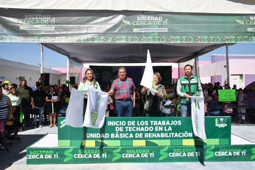 Soledad de Graciano Sánchez SLP.- El Alcalde de Soledad de Graciano Sánchez, Juan Manuel Navarro Muñiz dio el banderazo de arranque a la construcción del techado con cubierta metálica en la Unidad Básica de Rehabilitación II, en la colonia Villa Jardín, una obra que resulta esencial para mejorar los servicios de terapia y rehabilitación de casi 600 pacientes con discapacidad que reciben apoyo del Sistema Municipal para el Desarrollo Integral de la Familia (DIF), a cargo de su presidenta, María del Pilar Cardona Reyna.