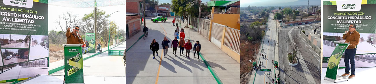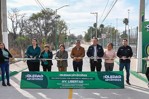 Soledad de Graciano Sánchez SLP.- Juan Manuel Navarro Muñiz, Alcalde de Soledad de Graciano Sánchez, realizó este lunes el corte de listón inaugural para la entrega de la obra de pavimentación con concreto hidráulico e instalación de alumbrado tipo led de la avenida Libertad, en el tramo de avenida Valentín Amador a calle Cigüeñas, en el fraccionamiento El Morro, con una inversión de más de 9.5 millones de pesos; importante renovación que beneficia de manera directa e indirecta a más de 26 mil habitantes, para fortalecer la movilidad urbana, la seguridad pública, la calidad de vida y el dinamismo económico local.
