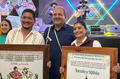 Al ritmo de las jaranas, violines y guitarras huapangueras, las y los asistentes de distintas partes de la huasteca fueron testigos también del hermanamiento entre los municipios de Xiltla y Jacala Hidalgo, que firmaron un convenio para seguir preservando la cultura y tradición huapanguera.