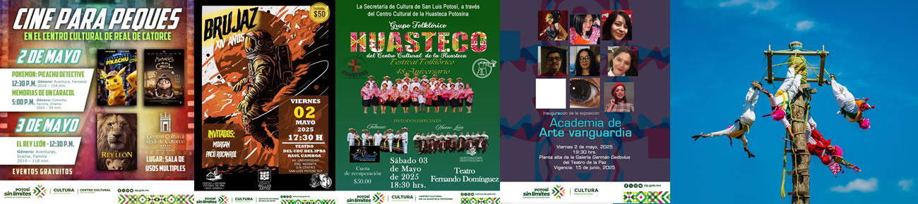 San Luis Potosí SLP.- Este fin de semana se tienen preparados diferentes eventos culturales por parte del Gobierno del Estado de San Luis Potosí a través de la Secretaría de Cultura (Secult), para que las familias disfruten su descanso sin límites de exposiciones, danza, rituales entre otros programas.