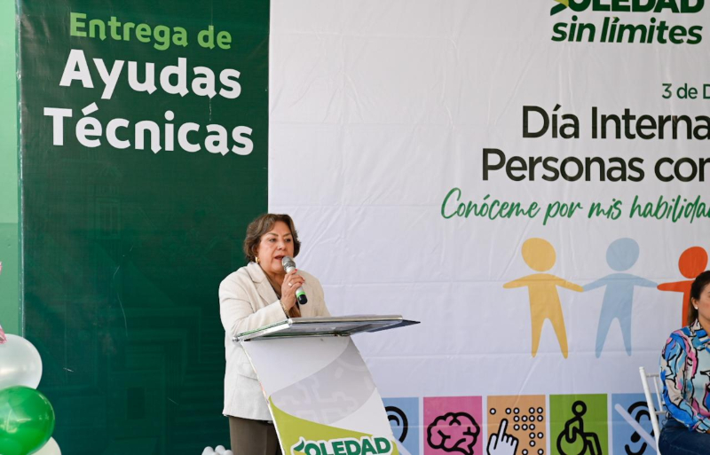 Soledad de Graciano Sánchez, México.- En el marco del Día Internacional de las Personas con Discapacidad, este 3 de diciembre, el Sistema Municipal DIF de Soledad de Graciano Sánchez realizó la entrega de apoyos técnicos y funcionales destinados a mejorar la movilidad y calidad de vida de decenas de familias. El acto fue encabezado por su presidenta, María del Pilar Cardona Reyna, quien destacó que estas acciones se realizan conforme a las indicaciones del alcalde Juan Manuel Navarro Muñiz, con el propósito de mantener un gobierno cercano y sensible.