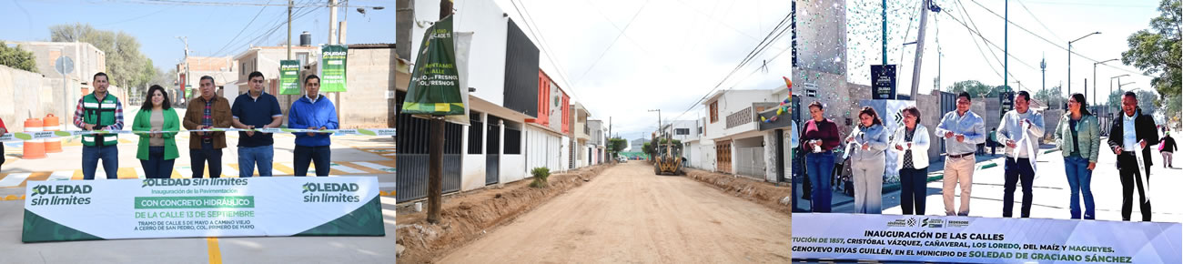 Con estas acciones, el Ayuntamiento de Soledad de Graciano Sánchez refrenda, por encomienda del Alcalde Juan Manuel Navarro Muñiz, una política de obra pública cercana a la población, que prioriza a las y los ciudadanos, fortalece la infraestructura urbana y consolida un gobierno que escucha, atiende y transforma de manera permanente el entorno de las familias soledenses.