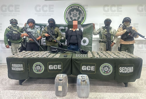 Cárdenas, SLP.- Como parte de los resultados contundentes en el combate a la delincuencia, agentes de la Guardia Civil Estatal (GCE), en coordinación con efectivos de la Secretaría de la Defensa Nacional (Sedena) y Guardia Nacional, asestaron un fuerte golpe a célula criminal, tras la detención de su presunto líder, quien fue capturado con más de un kilo de marihuana, dosis de metanfetaminas, armamento, entre otros objetos constitutivos de delito.