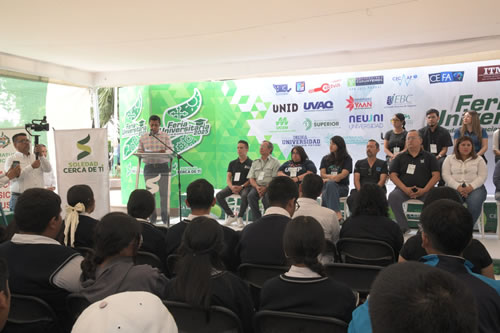 A nombre del Alcalde, el Secretario general del Ayuntamiento, Benjamín Pérez Álvarez resaltó que esta Feria responde a la alta demanda de opciones educativas que cada año manifiestan las y los jóvenes del municipio. “Este evento es para ustedes, para que encuentren el camino hacia una profesión con claridad, seguridad y con respaldo, gracias a los convenios establecidos por esta Administración, muchas de las instituciones aquí presentes ofrecen descuentos especiales en inscripciones, mensualidades y becas académicas”.