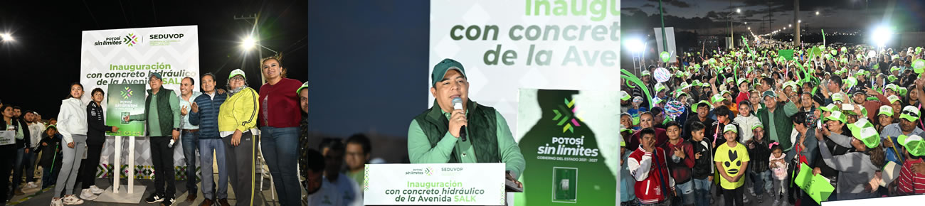 San Luis Potosí SLP.- Con un atardecer vibrante, el Gobernador de San Luis Potosí Ricardo Gallardo Cardona cortó el listón inaugural y encendió las iluminación de la Prolongación de la Avenida Salk desde el Circuito Potosí hasta el eje 122, una obra muy esperada que contribuye a erradicar el congestionamiento de la carretera 57, transforma la movilidad al sur de la ciudad, incrementa la plusvalía y fortalece la seguridad en la zona.