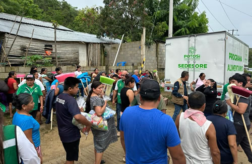 San Luis Potosí SLP.- El Gobierno del Estado continúa en el apoyo sin límites a las y los potosinos que resultaron afectados en Tamazunchale, por lo que la Secretaría de Desarrollo Social y Regional (Sedesore), la Coordinación Estatal de Protección Civil (CEPC) y el ayuntamiento, entregaron apoyos alimentarios, kits de limpieza, colchones, colchonetas y catres a las y los potosinos que resultaron afectados por las lluvias del lunes que provocaron el desbordamiento del arroyo en la colonia Loma Bonita.