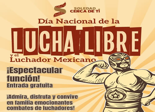 Soledad de Graciano Sánchez SLP.- El Ayuntamiento de Soledad de Graciano Sánchez, a través de la Coordinación de Deporte Municipal, invita a todas las familias soledenses y visitantes a disfrutar de una gran función de lucha libre de talla nacional completamente gratis, con motivo de la celebración del Día Internacional de la Lucha Libre, la cual tendrá lugar este domingo 21 de septiembre a las 5 de la tarde en la explanada del Jardín Hidalgo, frente a la Presidencia Municipal.
