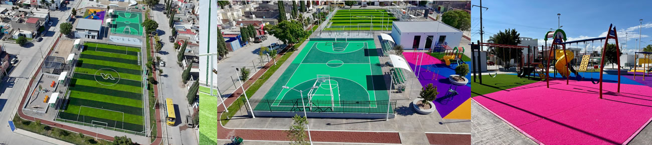 -El nuevo parque cuenta con cancha deportiva, trotapista, juegos infantiles con pasto sintético, iluminación led y un módulo de usos múltiples, beneficiando a niñas, niños, jóvenes y adultos mayores, así como con una Purificadora gratuita.
