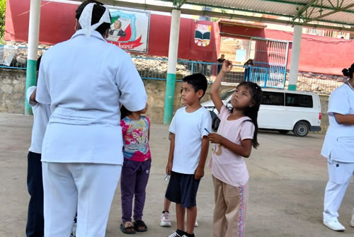 San Luis Potosí SLP.- Más de 31 mil niñas y niños de educación primaria de escuelas públicas de las cuatro regiones, han sido atendidos a través de la estrategia nacional “Vida Saludable” que continúa avanzando sin límites para transformar las escuelas en entornos de promoción y prevención, canalizando a las y los alumnos a clínicas de salud para atención especializada, incluyendo lentes para quienes lo requieran.