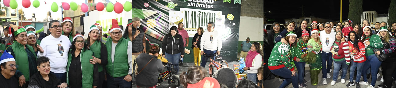 Soledad de Graciano Sánchez SLP.- Juan Manuel Navarro Muñiz, Alcalde de Soledad de Graciano Sánchez, cumplió el quinto día llevando un mensaje de paz y alegría a las familias del municipio; en esta ocasión, familias de la zona oriente recibieron estas emocionantes Posadas navideñas, al recorrer las colonias Villa Alborada, Primera de Mayo, Quintas de la Hacienda, Cactus y La Sierra, donde entregó juguetes a niñas y niños y cobijas a adultos mayores, como parte de una estrategia de cierre de año enfocada en llevar bienestar directo a los hogares.