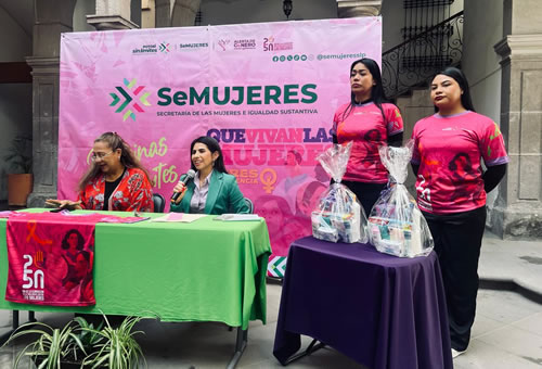 Gloria Serrato informó que la inscripción a la carrera será con causa y consistirá en entregar un kit de higiene personal y registrarse en la página https://semujeres-publico.slp.gob.mx/carrera_atletica; para dudas, está disponible el teléfono 444 144 2920 y las redes sociales de la Semujeres. Añadió que la competencia arrancará y terminará en el área verde del Lago Mayor, con categorías infantil, libre y para personas con discapacidad, en recorridos de tres y cinco kilómetros.