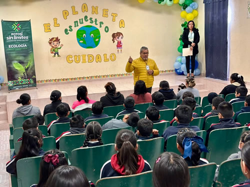 San Luis Potosí SLP.- En el marco del Día Mundial de la Educación Ambiental, la Secretaría de Ecología y Gestión Ambiental (Segam) realizó una jornada educativa en la escuela primaria “Niño Artillero”, ubicada en la localidad de Monte Obscuro, en Mexquitic de Carmona. La actividad permitió acercar a la comunidad escolar a prácticas y reflexiones sobre la importancia de proteger sin límites el entorno natural tal como lo ha impulsado el Gobernador Ricardo Gallardo Cardona.