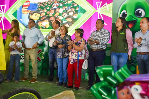 Soledad de Graciano Sánchez SLP.- En este Día de la Niñez, cientos de pequeños y pequeñas fueron festejados por el Gobernador del Estado, Ricardo Gallardo Cardona, en la colonia Cactus, quien acompañado del Alcalde, Juan Manuel Navarro Muñiz, y la senadora de la República, Ruth González Silva, ofrecieron una noche de alegría, ilusión y diversión con la entrega de juguetes, bicicletas y sorpresas.