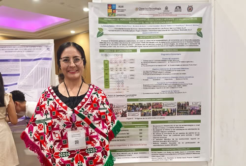 Luisiana Fabiola Palomo González, investigadora de la Universidad Autónoma de San Luis Potosí e integrante de la Red Potosina de Mujeres por la Ciencia, compartió su trayectoria, retos y aportaciones en la investigación orientada a la valorización de residuos agroindustriales y plásticos, con el propósito de transformarlos en productos y combustibles útiles para las cadenas productivas, además de su labor en proyectos de divulgación científica en comunidades.