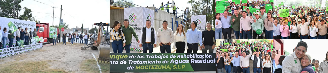 San Luis Potosí SLP.- El Gobernador de San Luis Potosí Ricardo Gallardo Cardona, inició obras hidráulicas y de saneamiento en Venado, Moctezuma y Villa Hidalgo, para brindar el acceso al agua potable, mejorar la eficiencia en su distribución y asegurar el tratamiento de las aguas residuales en beneficio de miles de habitantes del Altiplano.