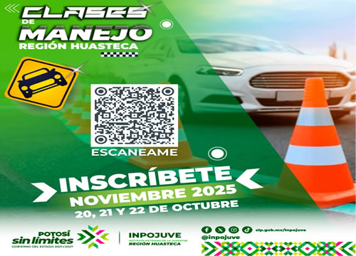 San Luis Potosí SLP.- El Gobierno del Estado, encabezado por Ricardo Gallardo Cardona, fomenta la educación vial sin límites, a través del Instituto Potosino de la Juventud (Inpojuve), abriendo inscripciones para las clases de manejo en la Huasteca durante el mes de noviembre. Las inscripciones se realizarán del 20 al 22 de octubre en las oficinas de la dependencia en la región, ubicadas en calle Morelos 104 interior L9, zona centro de Ciudad Valles.
