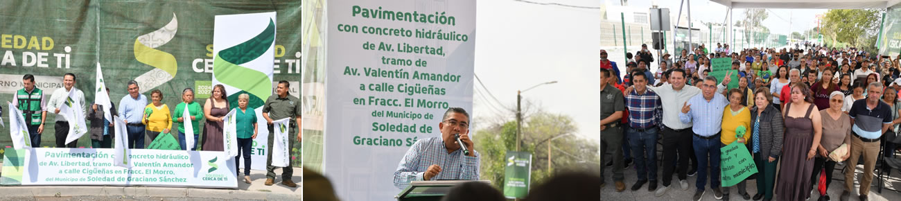 Soledad de Graciano Sánchez SLP.- Juan Manuel Navarro Muñiz, Alcalde de Soledad de Graciano Sánchez, dio arranque a los trabajos de pavimentación con concreto hidráulico de la Avenida Libertad, en el tramo que va de Avenida Valentín Amador a la calle Cigüeñas, en la colonia El Morro, que beneficiará directamente e indirectamente a más de 26 mil habitantes, y representa una respuesta firme del Gobierno Municipal al compromiso de transformar vialidades deterioradas en espacios modernos, seguros y funcionales para las familias soledenses.